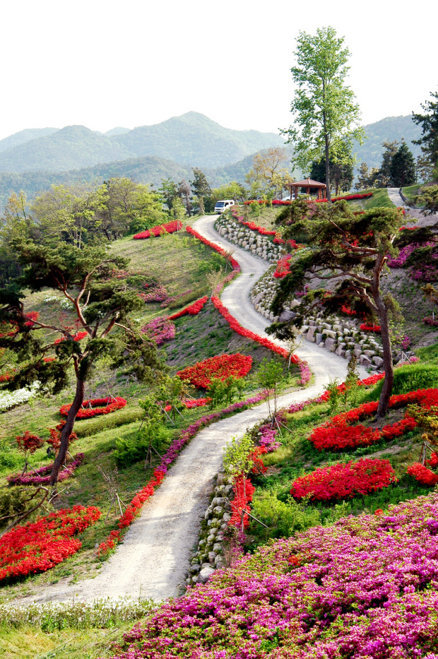 ![]() 백제불교최초도래지를 지나 숲쟁이공원으로 가는 길에 자리잡은 숲쟁이꽃동산에서는 만개한 철쭉과 나무사이로 만들어진 산책로가 일품이다. |