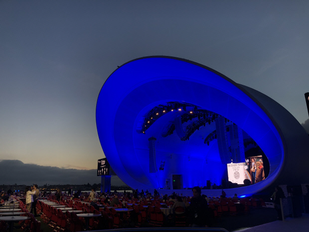 씨포트 옆의 마리나 공원 산책로를 거닐다 보면 커다란 소라 모양의 건축물이 눈에 띈다. 낮에는 하얀 색이지만 밤에는 조명에 따라 푸른 빛을 내거나 붉은 색을 띠는 야외공연장이다. 정식 명칭은 ‘제이콥 공원의 래디 쉘’(Rady Shell at Jacobs Park). 샌디에이고의 심포니 오케스트라가 운영하는 곳으로 15년 동안 여름 시즌에만 임시로 설치했던 콘서트 공연장을 철거하고 지난 2021년 현재의 모습으로 신축해 개관했다.