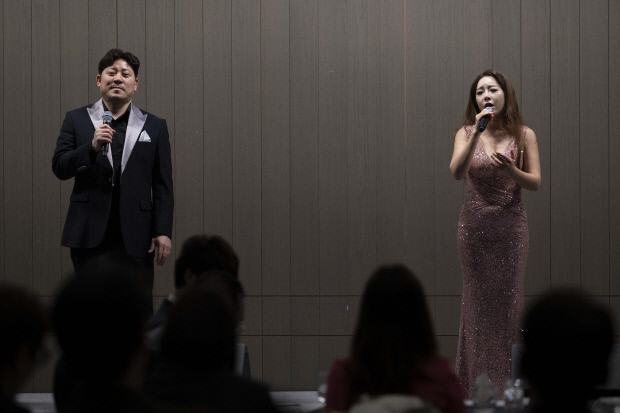 ![]() 제12기 광주일보 리더스 아카데미 입학식에서 소프라노 김정아<오른쪽>, 바리톤 유진호가 축하공연을 하고 있다. |