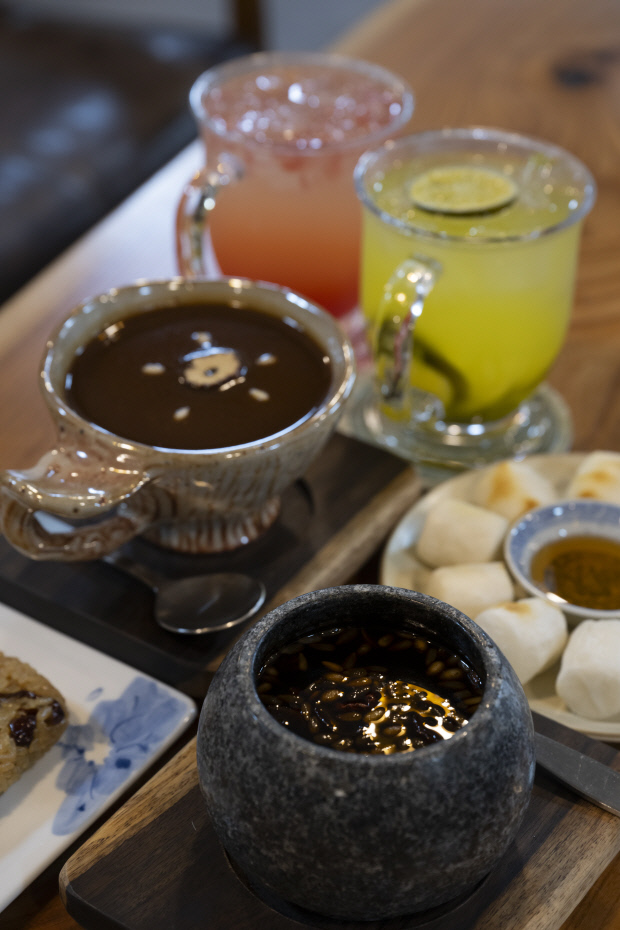 카페 문을 연지 1년 밖에 지나지 않았지만 ‘쌍화차 성지’라는 입소문을 타고 많은 이들이 찾아주고 있다. 기와 혈을 보호해준다는 의미로 ‘쌍화’라는 이름이 붙여진 쌍화탕은 백작약, 숙지황, 황기, 당귀, 계피, 감초 등 약재를 달여 만든 탕약이다. 문헌에 소개돼 있는 8가지 기본 약재에 5가지를 추가해 13가지 한약재로 정성들여 달인 ‘송명갤러리카페’만의 쌍화차가 탄생했다. 쌍화차 뿐 아니라 걸죽하게 끓여낸 대추차도 이곳의 메인 메뉴다.