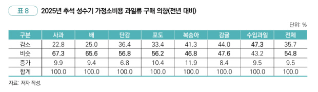 다만 소비자들은 정부의 과일 수급 안정을 통한 가격 안정화 노력에도 과일을 많이 구매하기에는 여전히 비싸다는 인식에 구매 의향이 감소했던 것으로 분석된다.