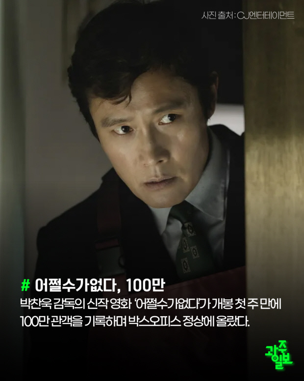 박찬욱 감독의 신작 영화 ‘어쩔수가없다’가 개봉 첫 주 만에100만 관객을 기록하며 박스오피스 정상에 올랐다.