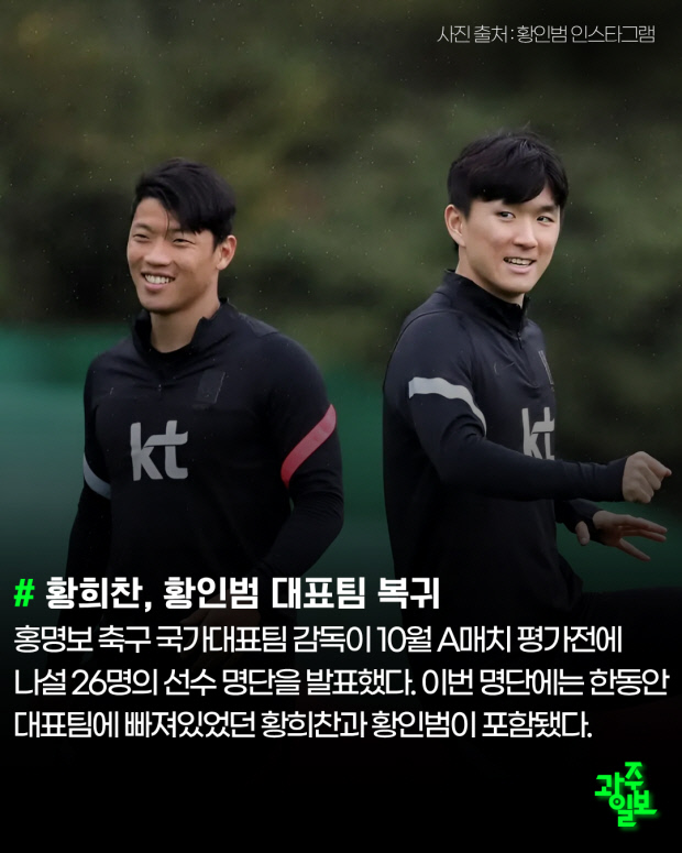 홍명보 축구 국가대표팀 감독이 10월 A매치 평가전에 나설 26명의 선수 명단을 발표했다. 이번 명단에는 한동안 대표팀에 빠져있었던 황희찬과 황인범이 포함됐다.
