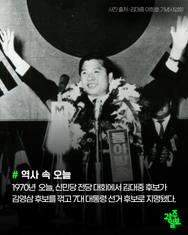 1970년 오늘, 신민당 전당 대회에서 김대중 후보가 김영삼 후보를 꺾고 7대 대통령 선거 후보로 지명됐다.