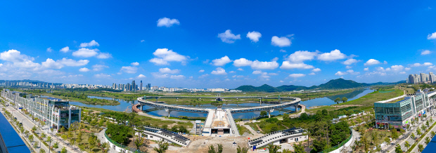 다양한 축제의 공간인 ‘축제섬’, 최고의 수상무대인 ‘무대섬’, 도심에서 해변을 연상할 수 있는 ‘물놀이섬’, 다양한 수생식물과 생태습지가 있는 ‘물꽃섬’과 ‘습지섬’ 등 5개의 인공섬이 관람객을 맞이한다.