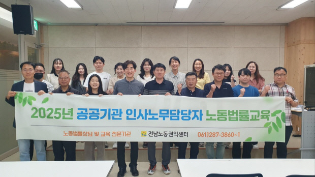 전남노동권익센터는 공공기관 인사노무담당자를 대상으로 노동법률교육을 진행했다.