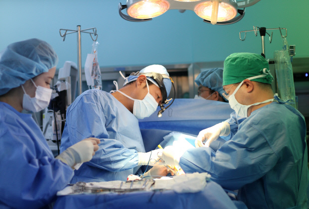 조선대병원 유방내분비외과 김유석 교수(가운데)가 수술을 집도하고 있다.