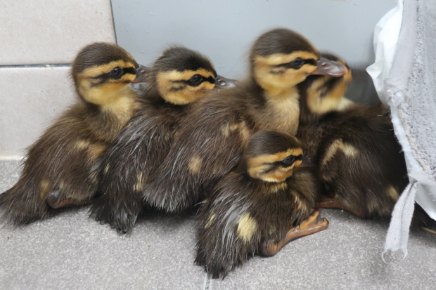 미아상태로 구조된 흰뺨검둥오리 가족.