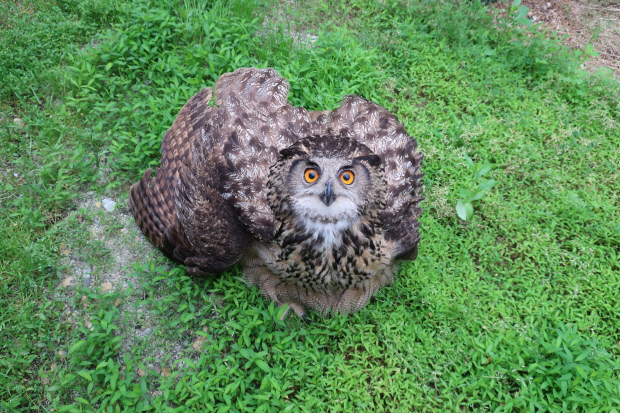 건물에 부딪혀 추락해 구조된 수리부엉이.