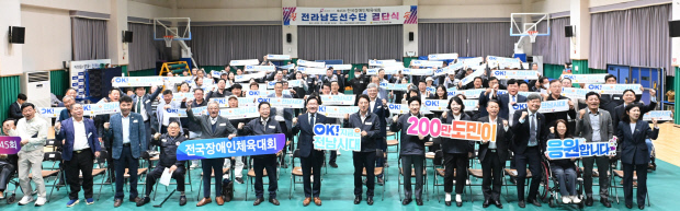 20일 전남체육회관에서 진행된 이번 결단식에는 선수단을 비롯해 강위원 전남도경제부지사, 김태균 전남도의회 의장, 박정현 전남도장애인체육회 상임부회장, 김대중 전남도교육감, 이현영 NH농협은행 전남본부 영업부장 등 200명이 참석했다.
