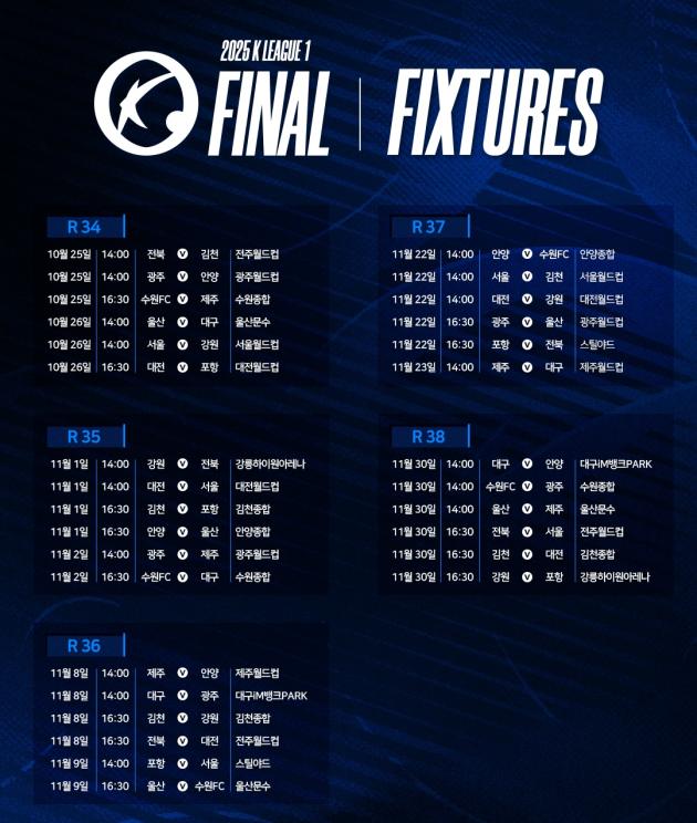 한국프로축구연맹이 20일 ‘하나은행 K리그1 2025’ 파이널라운드 일정을 발표했다.