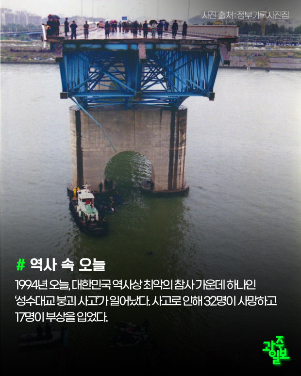 1994년 오늘, 대한민국 역사상 최악의 참사 가운데 하나인 ‘성수대교 붕괴 사고’가 일어났다. 사고로 32명이 사망하고 17명이 부상을 입었다.