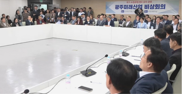 ![]() 광주지역사회 대표들이 21일 광주시청 중회의실에서 모여 광주 미래산업 비상회의를 진행하고 있다. <광주시 제공> |