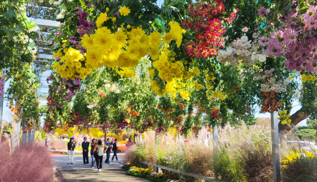 29일 오전 함평군 함평엑스포공원에 만개한 꽃을 배경으로 관람객들이 사진을 찍고 있다. 함평 엑스포공원에서는 오는 11월 9일까지 ‘2025 대한민국 국향대전’이 열린다. /나명주 기자 mjna@kwangju.co.kr