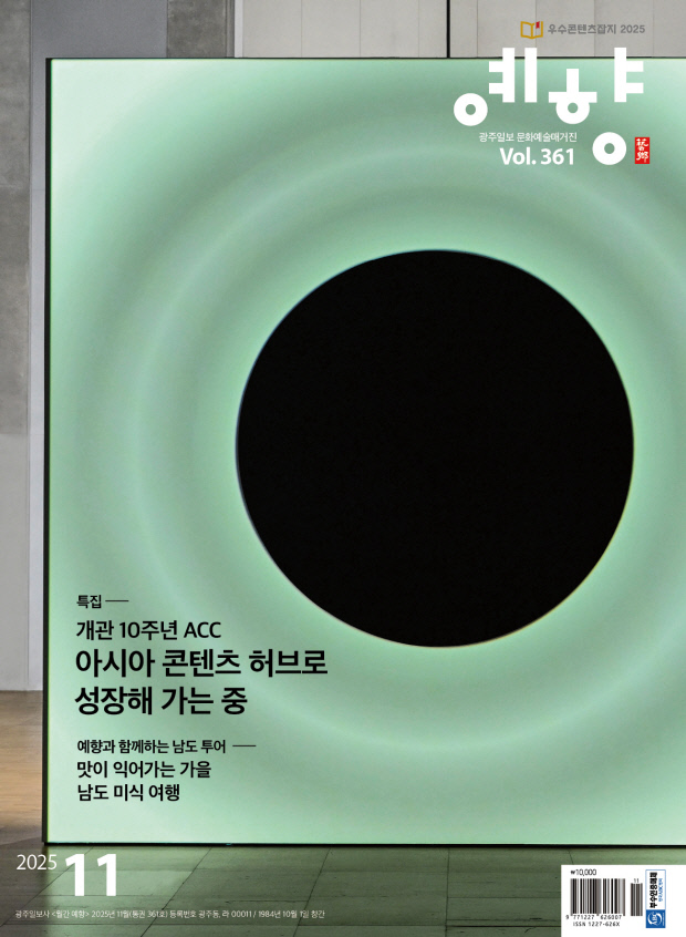 광주일보가 발행하는 문화예술매거진 ‘예향’ 11월호는 ‘개관 10주년 ACC, 아시아 콘텐츠 허브로 성장해 가는 중’을 특집으로 준비했다. 아시아 콘텐츠의 수집, 연구, 소통에 힘써온 지난 10년간의 여정과 예술 창작의 새로운 관점을 열어가고 있는 크리에이터스 레지던시 현장, 주목받는 10주년 특별전 ‘봄의 선언’과 ‘료지 이케다 전’을 소개한다.