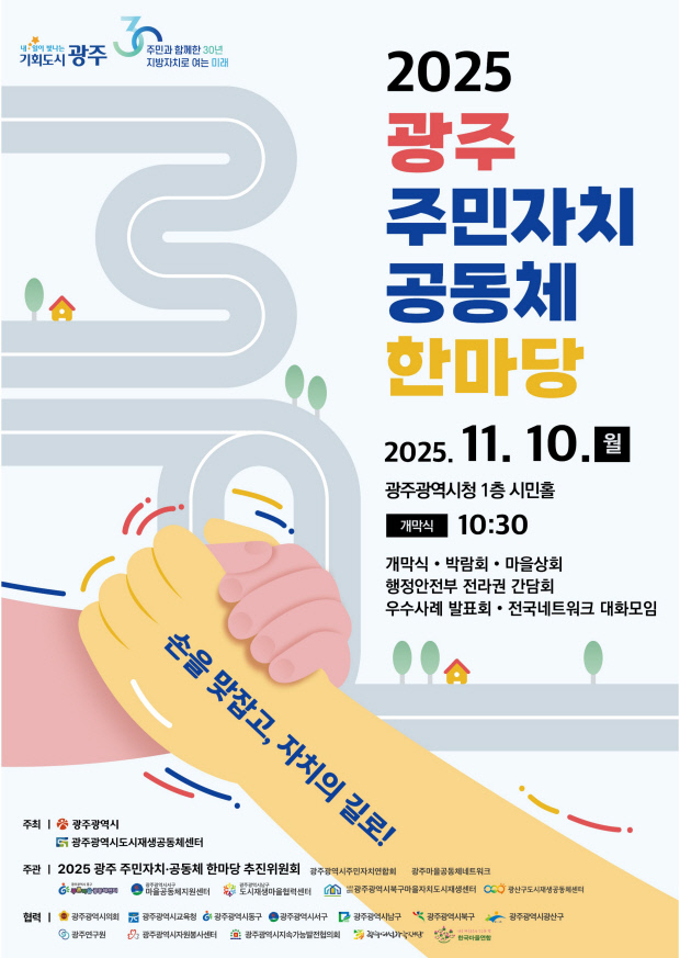 “손을 맞잡고, 자치의 길로!”…광주, 10일 시민홀서 주민자치·공동체 한마당