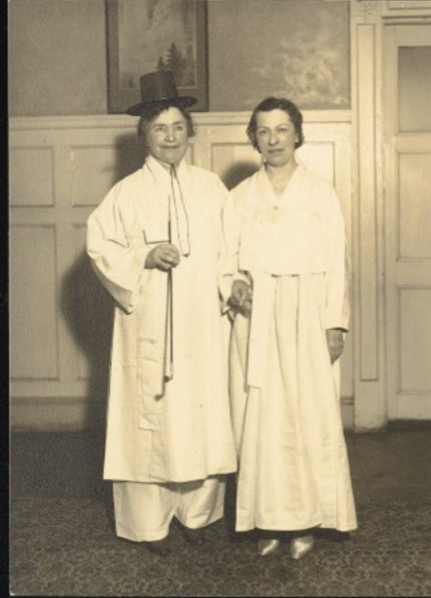![]() 보고, 듣고, 말하지 못했던 헬렌켈러는 후각과 촉각으로 세계를 인식했다. 1937년 조선 방문 당시 한복을 입은 헬렌켈러(왼쪽)와 폴리 여사. <서해문집 제공> |