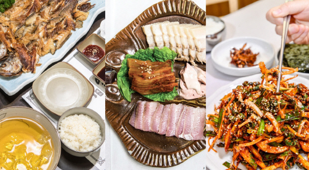 ![]() 남도에서 맛볼 수 있는 다양한 음식들. 왼쪽부터 굴비정식, 홍어삼합, 섬진강 다슬기무침. |
