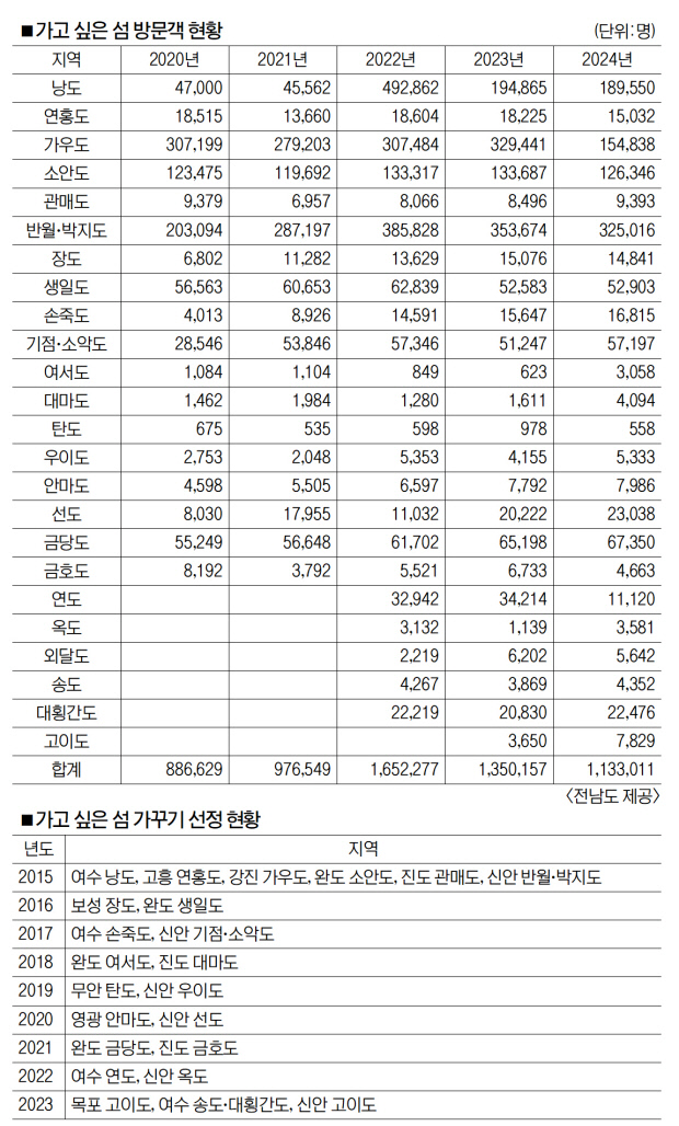 전남도가 지난 2015년부터 올해까지 ‘가고 싶은 섬’으로 선정한 섬은 모두 24개.