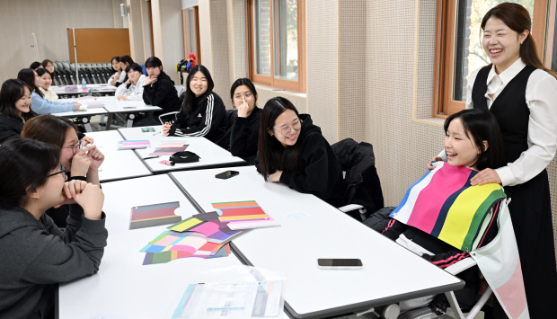 ![]() 19일 광주시교육청학생교육원에서 열린 ‘고3 수험생 힐링 캠프’에서 동아여고 3학년 학생들이 퍼스널 컬러 측정을 하고 있다.