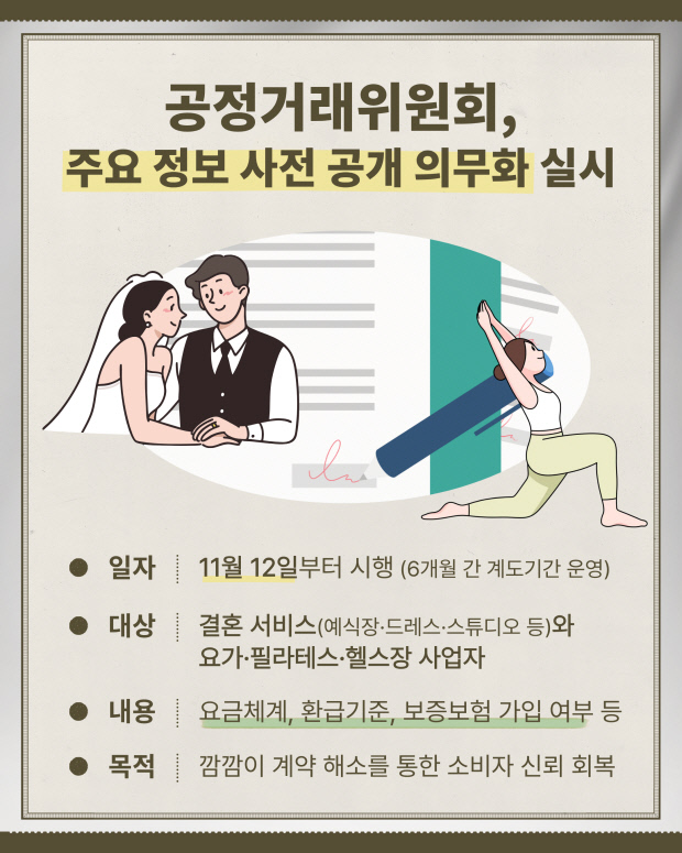 [광클] 공정위, 결혼·피트니스 분야 요금·환불 기준 공개 의무화