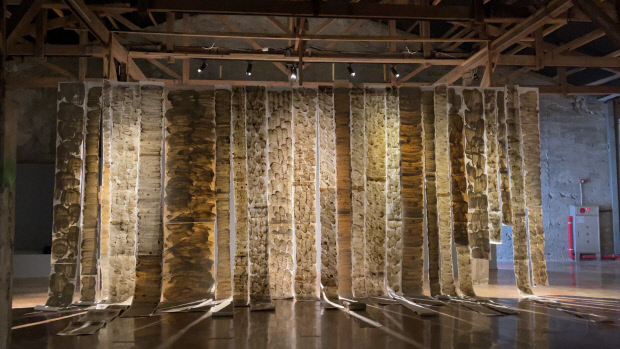소금박물관 전시실에 설치된 전희경의 ‘Mud Drawing’.