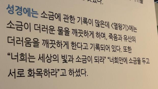 소금박물관 내 ‘소금과 세계의 정화’ 섹션 설명 중 일부.