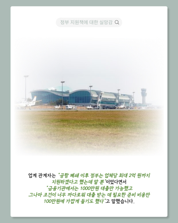 공항 폐쇄에도, 여행업 외에 달리 할 게 없어 ‘나홀로 여행사’ 식으로 버티는 경우도 적지 않습니다.