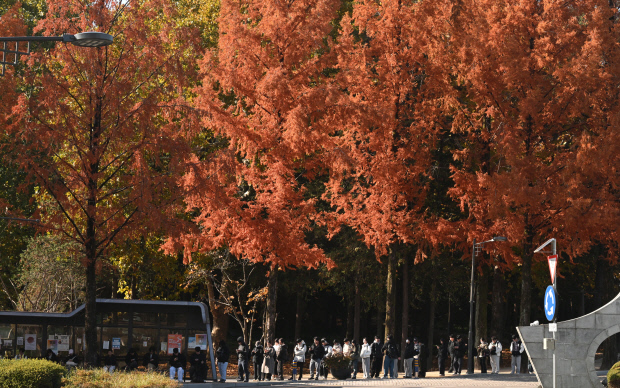 [오늘의포토] 만추의 캠퍼스 ‘주황빛 기다림’