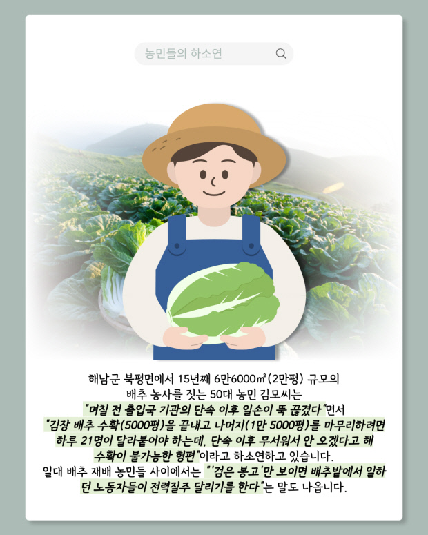 [오늘의 지면] 외국인 불법 노동자 단속에 일손 끊긴 해남 배추농가