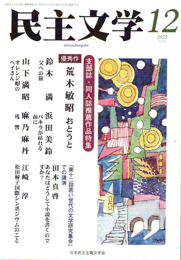 ‘민주문학’은 1965년 창설된 ‘일본민주주의문학동맹’이 그 해부터 발행해온 유서 깊은 문예지. 1993년 이 문학동맹이 ‘일본민주주의문학회’로 거듭난 뒤로도 전국에 지부를 두고 꾸준히 진보 문학을 이끌어 왔다.