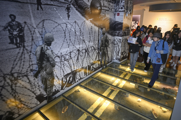 12·3 비상계엄 사태 이후 4개월여 뒤인 지난 4월 30일 광주시 동구 금남로 5·18민주화운동기록관에서 광주 수피아여중 학생들을 비롯한 관람객들이 붐비고 있다. 비상계엄 여파로 5·18기록관 관람객은 지난해 5만 9083명에서 올해(11월 9일 기준) 9만 9556명으로 두 배 가까이 뛰었다. /김진수 기자 jeans@kwangju.co.kr