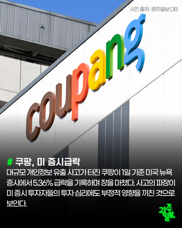 대규모 개인정보 유출 사고가 터진 쿠팡이 1일 기준 미국 뉴욕 증시에서 5.36% 급락을 기록하며 장을 마쳤다. 사고의 파장이 미 증시 투자자들의 투자 심리에도 부정적 영향을 끼친 것으로 보인다.