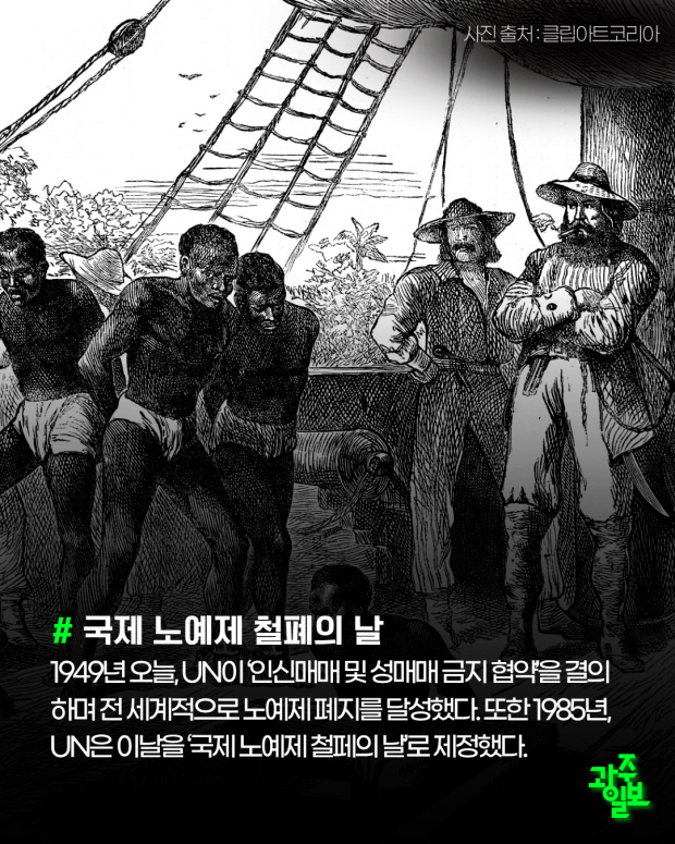 1949년 오늘, UN이 ‘인신매매 및 성매매 금지 협약’을 결의하며 전 세계적으로 노예제 폐지를 달성했다. 또한 1985년, UN은 이날을 ‘국제 노예제 철페의 날’로 제정했다.
