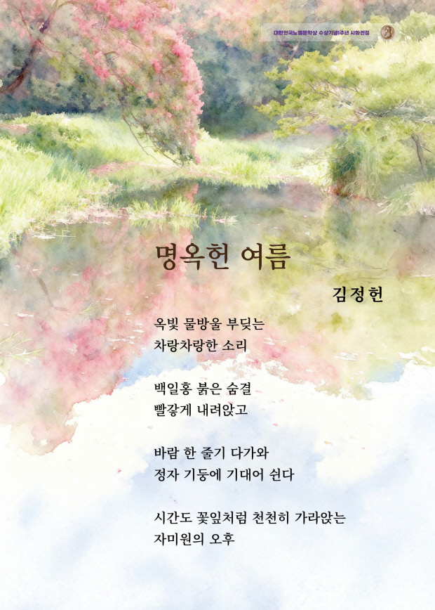 “(전략)// 눈길 닿는 곳마다/ 물결치는 그리움/ 산야마다 꽃향기 낭만 풀어/ 빈 가슴 소복이 채워 준다// 침묵의 빛으로/ 수많은 민주화 한 많은 사연 안고/ 가슴에 언어/ 나래 펴 감싸고 있다”