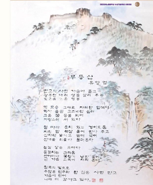 유양업 시인의 ‘무등산’은 광주의 진산 무등을 묘사한 작품이다. 시인은 빛고을의 고운 영봉이라 칭한다.