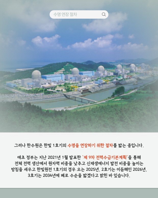 그러나 한수원은 한빛 1호기의 수명을 연장하기 위한 절차를 밟는 중입니다.