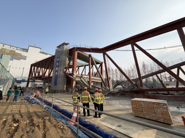 이날 오후 2시께 광주시 서구 치평동 광주대표도서관 신축 공사 현장에서 공사 중이던 건물이 무너졌다.