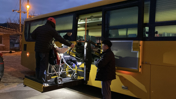 오전 7시 20분께 B(11·뇌병변 장애)군은 휠체어에 앉은 그대로 버스에 장착된 휠체어 리프트를 통해 통학버스에 탑승했다. B군은 그동안 리프트 없는 버스에 타느라 버스 운전 기사와 아버지가 일일이 안아 올려줘야 탑승할 수 있었다.