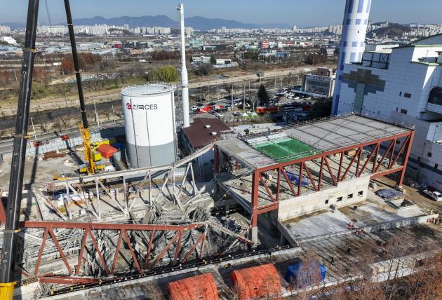 13일 광주시 서구 치평동 광주대표도서관 신축 공사 붕괴 사고 현장이 엿가락처럼 휜 철골 구조물과 무너진 콘크리트, 철근 등으로 사고 당시 처참함을 보여주고 있다. /김진수 기자 jeans@kwangju.co.kr