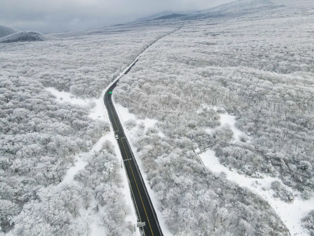 ![]() 1100도로 설경-제주시와 서귀포시 중문동을 잇는 1100도로는 1100고지를 정점으로 설경을 감상하기에 좋다. |