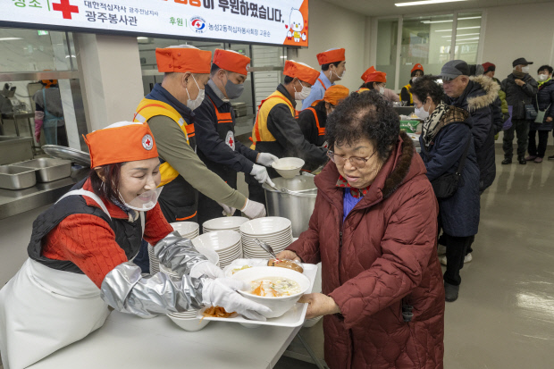 [오늘의포토] 농성2동 적십자봉사회, 지역 어르신에 떡국 봉사