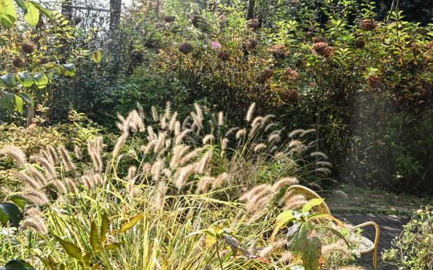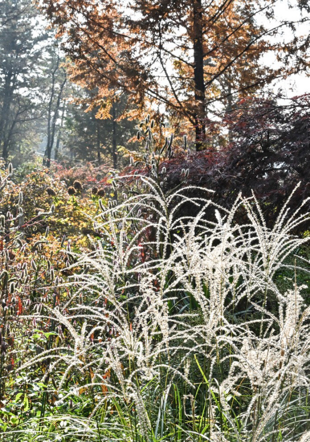 죽화경에 식재된 야생초가 초겨울 햇빛에 반짝이고 있다.