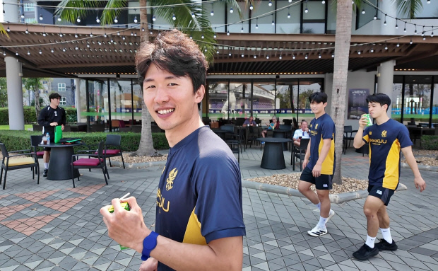 태국 후아힌에서 동계훈련 중인 광주FC 선수들이 19일 오전 웨이트 훈련이 끝난 뒤 이동하고 있다.