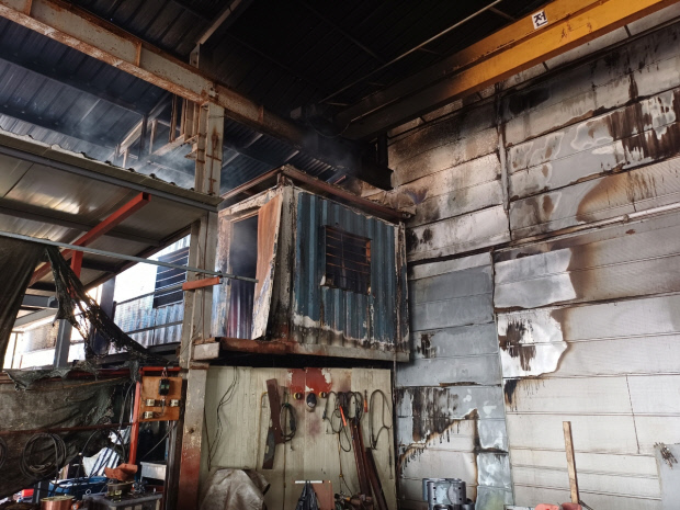 ![]() 27일 오전 10시 10분께 장성군 삼서면 석마리의 한 금형공장에서 불이 나 50여분만에 진화됐다. <장성소방 제공> |