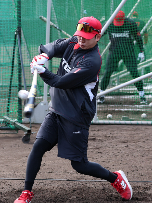 ![]() 아쉬웠던 지난 시즌을 뒤로하고 KIA 박정우가 1번을 달고 새 출발한다. 일본 아마미 캠프에서 타격 훈련을 하는 박정우. <KIA 타이거즈 제공> |