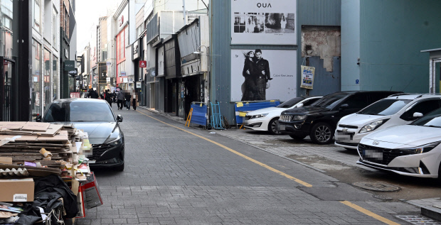 ![]() 3일 광주시 동구 충장로 3가 일대가 한산한 모습을 보이는 가운데 공실 상가들 사이로 차량이 나란히 주차돼 있다. |