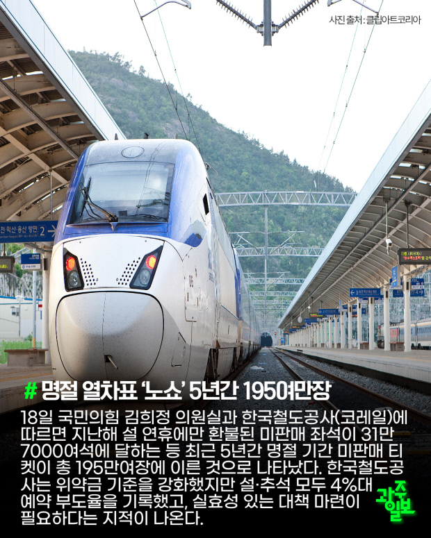 18일 국민의힘 김희정 의원실과 한국철도공사(코레일)에 따르면 지난해 설 연휴에만 환불된 미판매 좌석이 31만7000여석에 달하는 등 최근 5년간 명절 기간 미판매 티켓이 총 195만여장에 이른 것으로 나타났다. 한국철도공사는 위약금 기준을 강화했지만 설·추석 모두 4%대 예약 부도율을 기록했고, 실효성 있는 대책 마련이 필요하다는 지적이 나온다.
