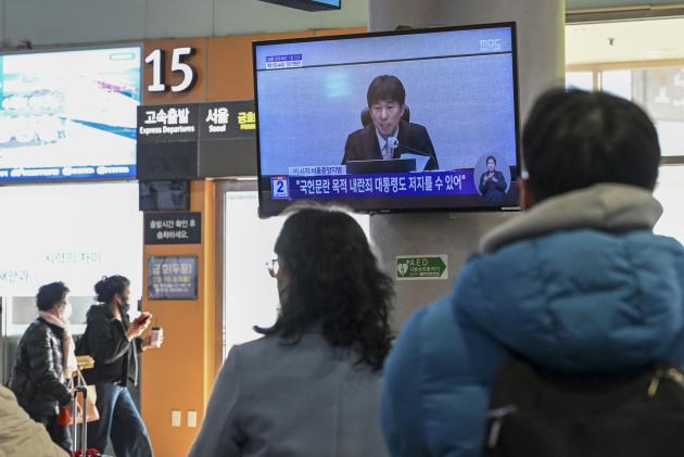 19일 광주 서구 광천동 버스터미널 대합실에서 시민들이 12·3 비상계엄 관련 내란 우두머리 혐의로 기소된 윤석열 전 대통령에 대한 1심 선고 공판 중계를 보고 있다./김진수 기자 jeans@kwangju.co.kr