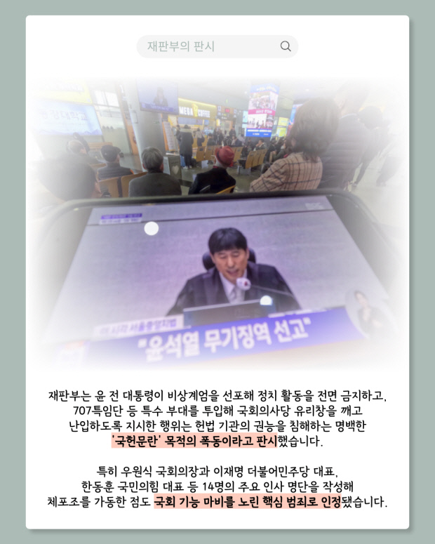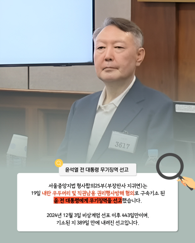 헌정 사상 초유의 친위 쿠데타를 기획·실행한 혐의로 재판에 넘겨진 윤석열 전 대통령에게 1심 법원이 무기징역을 선고했다.